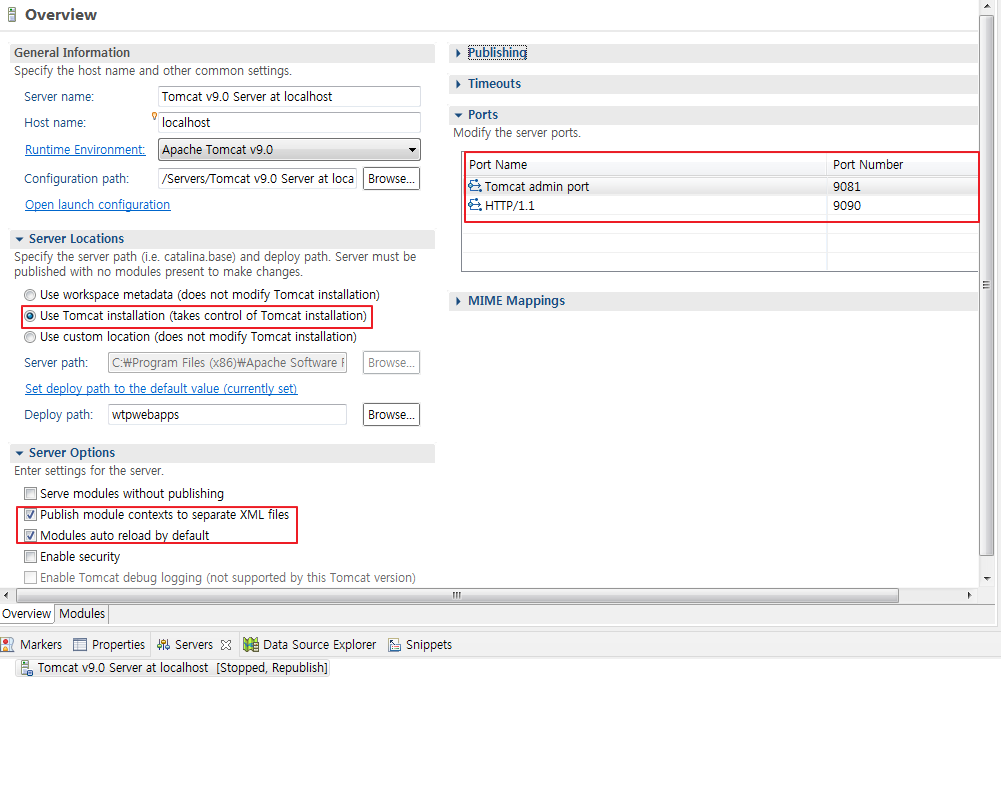 빨간색 박스로 되어있는 부분만 변경해주고 저장해주면 끝납니다. port가 충돌이 날경우 변경해줘야 합니다.