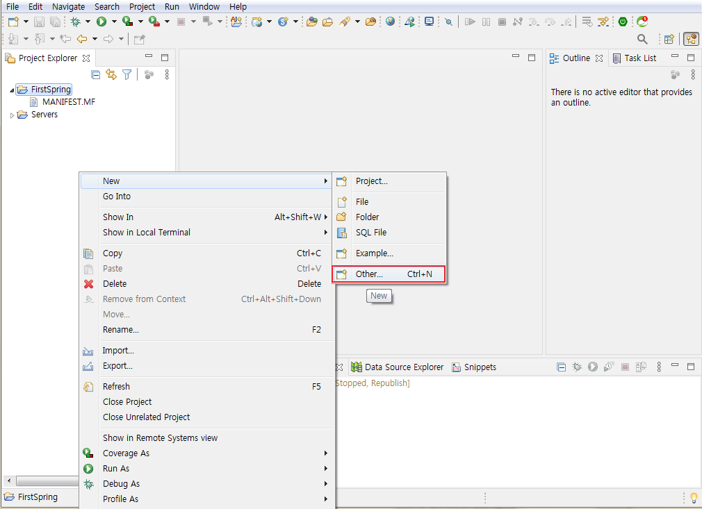 #4에서 만든 프로젝트가 자동으로 잘 생성이 되지 않았다면 수동으로 만들어야 합니다.