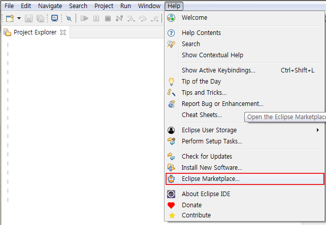 1. 이클립스에서 Help -> Eclipse Marketplace