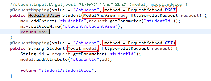 //studentInput에서 get,post 둘다 동작할 수 있도록 오버로딩 ( model, modelandview )