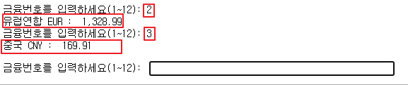 select = int(input("금융번호를 입력하세요(0~11): "))