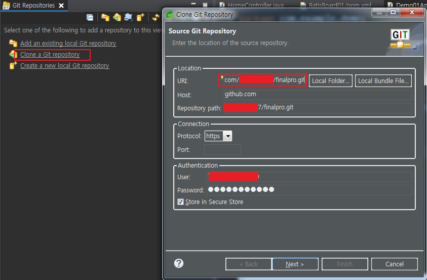 [github] 깃허브에서 이클립스로 프로젝트 가져오기