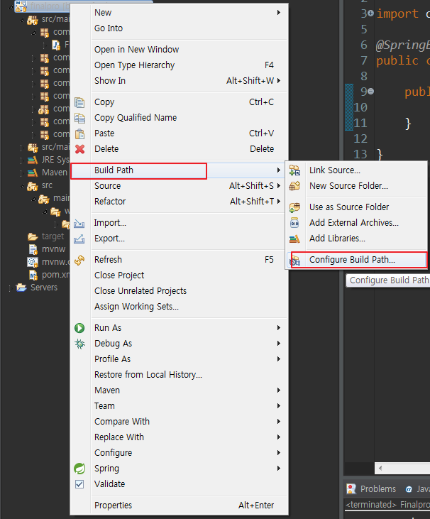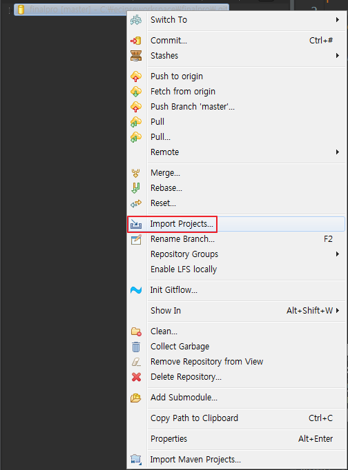 3. Git에서 가져온 프로젝트 우클릭 -> Import Projects ( 여기까지 하면 Java EE탭에 프로젝트가 추가됨 )