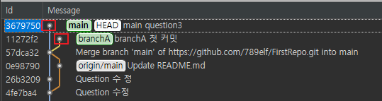 다른 branch에서 작업하면 History의 갈래가 나뉘는 것을 확인 할 수 있다.
