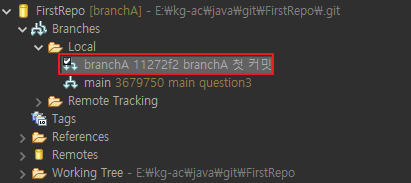 레포지토리에 branchA가 생성된 것을 확인할 수 있다.