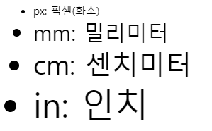 > 2.0em 일 때 현재 요소에 설정된 font-size의 2배가 된다. - rem: 현재 페이지 html태그에 설정된 font-size에 비례한 크기 조절