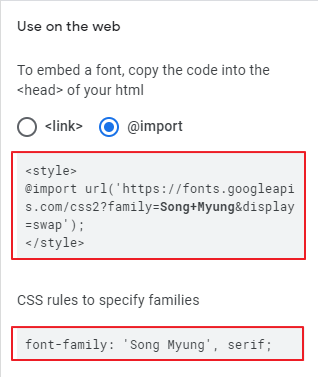 @import url('https://fonts.googleapis.com/css2?family=Song+Myung&display=swap');