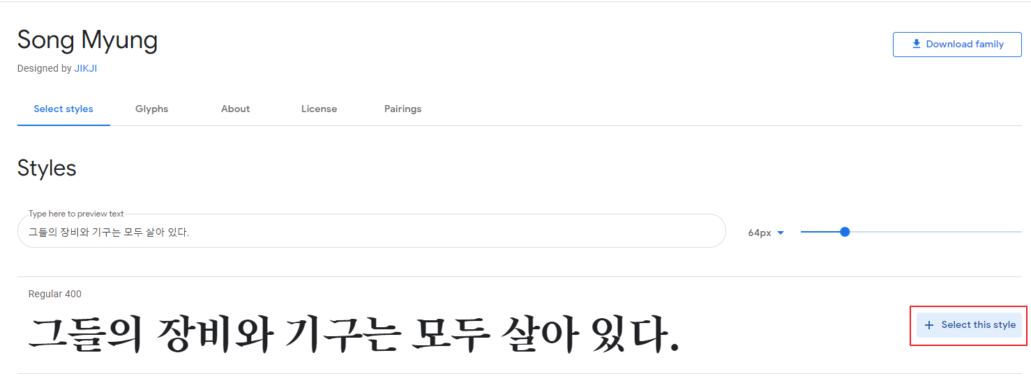 1. 원하는 글꼴에 들어가서 + Select this style 클릭