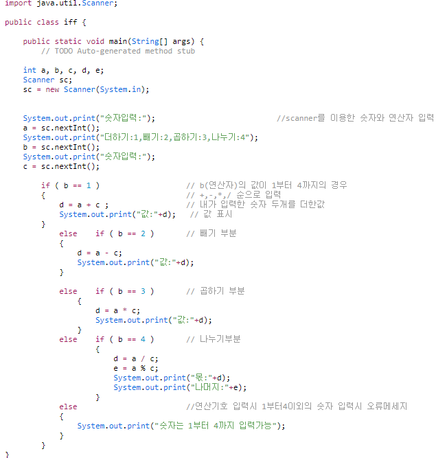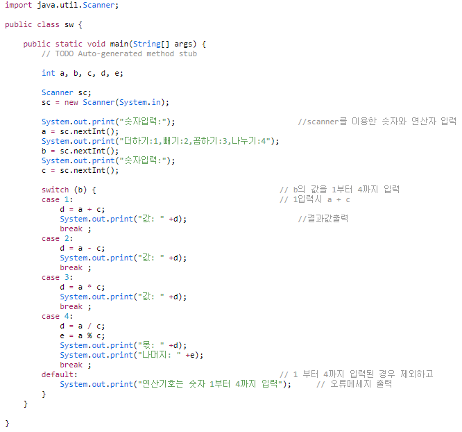조건문 if와 switch를 이용해 간단한 계산기 만들기