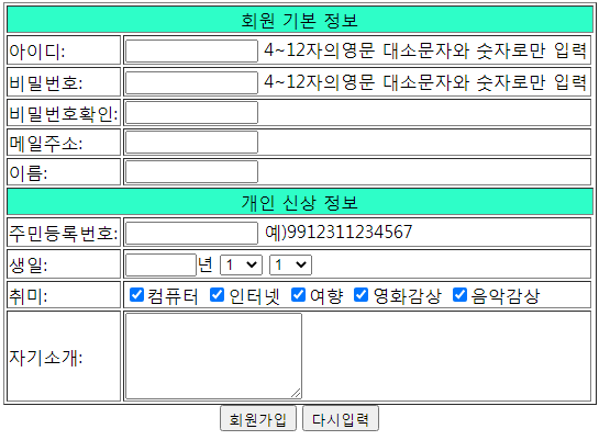 [html]기초 마무리 문제(회원가입창 모양새만들기)