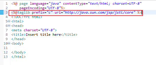 <%@taglib prefix="c" uri="http://java.sun.com/jsp/jstl/core" %>