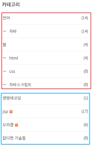 바로 카테고리를 대/소분류로 나누어서 대분류 안에 소분류로 된 카테고리를 넣을 수 있습니다!