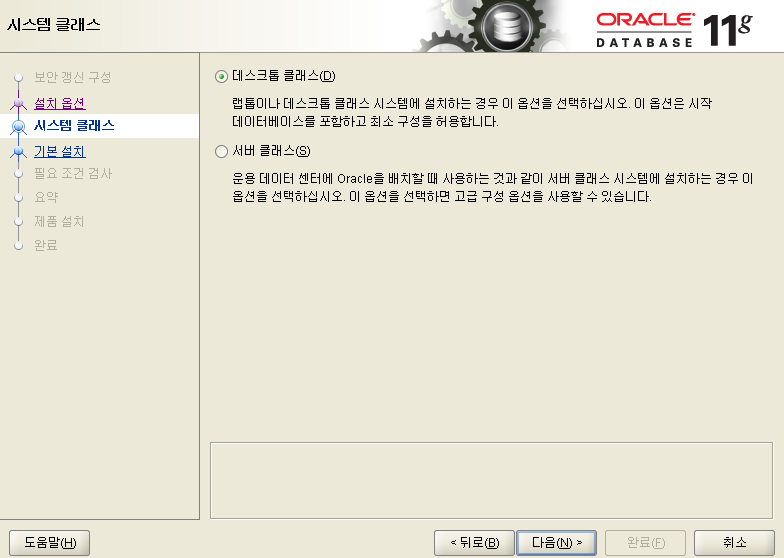6.난 학습용으로 설치할것이기 떄문에 데스크톱 클래스로 선택했다.