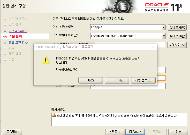 추천도 받은 11로 설치하기로 했다. 오라클을 설치할때는 설치 경로상에 한글로 된 폴더가 1도 없도록 해준다.