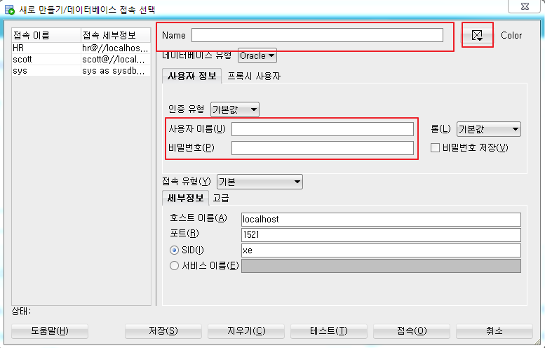 사용자 이름 : 실제 접속해서 사용할 user명을 입력
