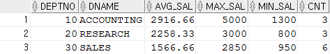 GROUP BY D.DEPTNO,D.DNAME;