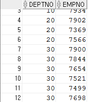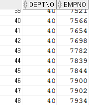 정렬은 DEPTNO를 기준으로 오름차순으로 정렬을 하였습니다.