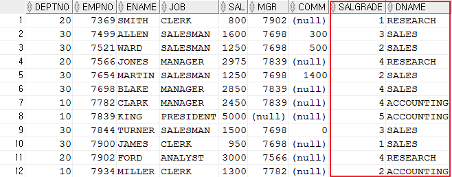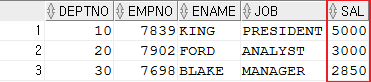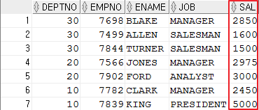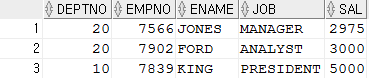SELECT DEPTNO,EMPNO,ENAME,JOB,SAL